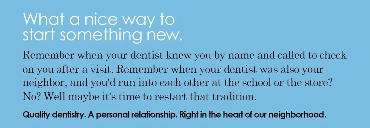 When I opened my dental office in September 2010, I set out to build a practice focused on personal relationships, quality dentistry, and great service. All in the heart of our neighborhood. We continue to welcome adults and children to our patient family.